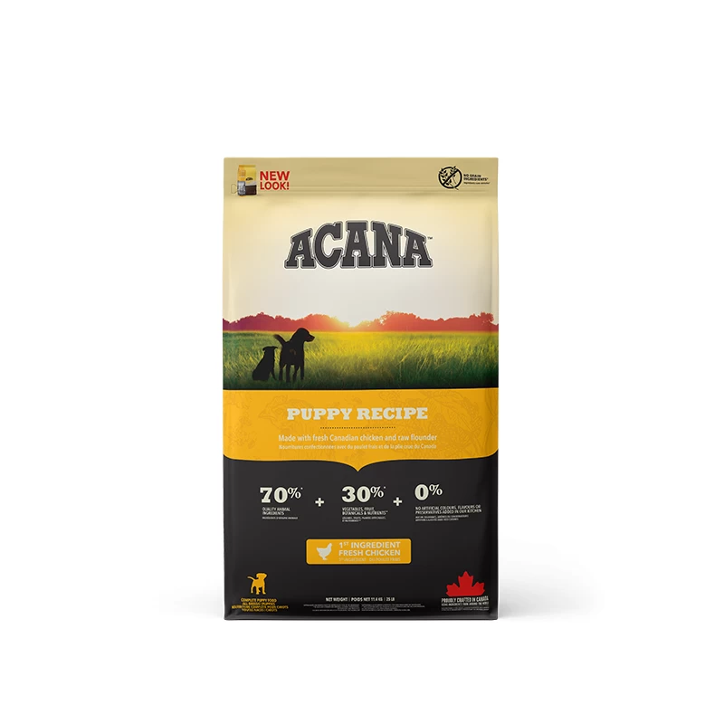 Bereid in onze gecertificeerde keukens in Canada is Acana Dog hondenvoer Puppy RecipeĀ rijk aan lokaal gefokte scharrel kip, scharrel eieren, in het wild gevangen platvis, zongerijpt fruit en groenten ā geleverd rijk aan voedingsstoffen en door boeren en telers uit onze regio zodat jouw puppy gezond, sterk en gelukkig kan zijn.