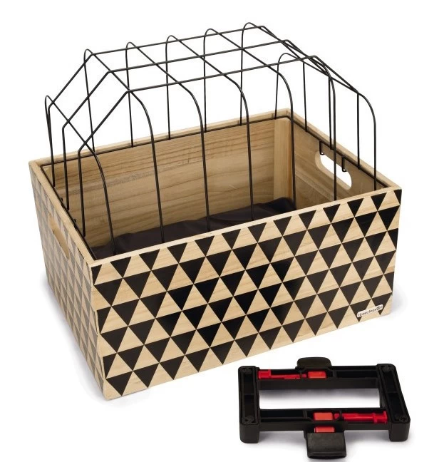 Deze hippe Beeztees Touring houten fietsmand met kap en grafische print is voorzien van een lekker zacht kussentje voor extra comfort. Heb je een beweeglijk hondje, dan is een mand achterop vaak fijner dan voorop, omdat er dan niet aan het stuur wordt getrokken. De kap zorgt ervoor dat jouw hond niet uit het mandje kan springen.