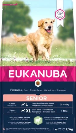 Eukanuba Senior Large lamb & rice is een premiumvoer waar alles in zit wat senior hond nodig heeft. Eukanuba droogvoer in brokvorm is rijk aan verse lam en rijst, en perfect voor senior honden van grote rassen.