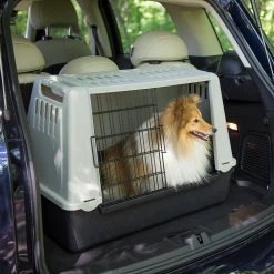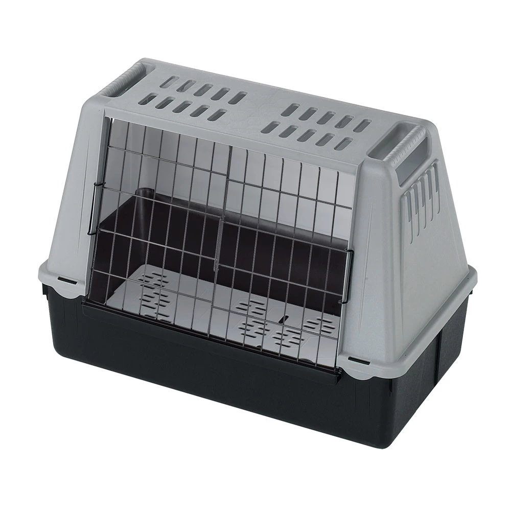Atlas Car is een stevige, lichtgewicht hondenbench gemaakt van kunststof, voor in de auto. Het stalen deurtje is gecoat met kunststof. Ontworpen om in de kofferbak van de meeste auto’s geplaatst te worden, is deze vervoersbox geschikt voor middelgrote en grote honden. Alle modellen hebben een stevig veiligheidsslot en een gemakkelijk te openen schuifdeur welke in twee richtingen te openen is. Grote ventilatiegaten houden de autobench goed geventileerd, terwijl de hygiënische afvoermat voor een droge omgeving zorgt. De praktische handgrepen aan de zijkanten zorgen voor een gemakkelijke positionering in de auto.