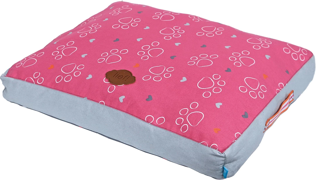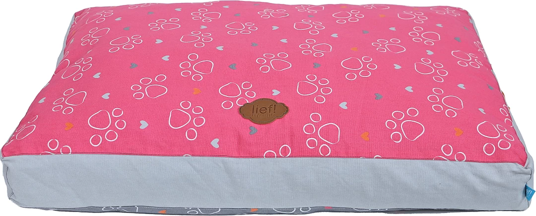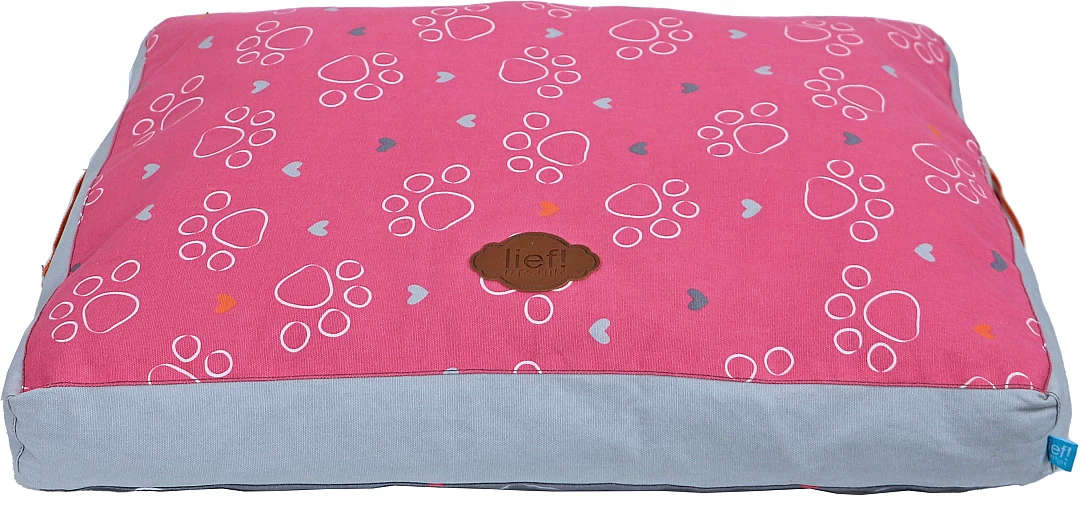 lief! lifestyle Girls hondenkussen Lounge 2-zijdig is een ligkussen voor honden, waar ze heerlijk op kunnen liggen. Het kussen is rozerood aan de ene kant en donkergrijs aan de andere kant, met een Girls- en pootprint aan beide kanten. De mooie details maken dit kussen helemaal af, zoals de handgrepen aan de zijkant van het kussen.