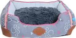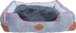 lief! lifestyle Girls hondenmand Divan is een bed dat geschikt is voor zowel honden als katten. De voornamelijk grijze mand heeft een pootjes opdruk met vrolijke Girls details. Ieder huisdier zal hier heerlijk in kunnen slapen! De mand is met bruine leren hoekstukken helemaal afgemaakt. Het mandje heeft een uitneembaar los antracieten kussen, van zacht pluche.