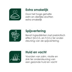 |  | Spijsvertering Bevat hoogwaardig lam en ingrediënten met prebiotisch effect (M.O.S. en F.O.S.) ter ondersteuning van de spijsvertering.  |