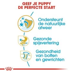 De pup is steeds beter in staat grotere hoeveelheden voeding te verteren. Ook de mogelijkheid tot het verteren van zetmeel groeit. In deze belangrijke fase van groei, is het van belang uw pup schraal te laten opgroeien, wat bijdraagt tot het behoud van gezonde gewrichten. De samenstelling van Royal Canin Bulldog Junior ondersteunt een optimale spijsvertering en draagt bij aan een gunstige darmflora.