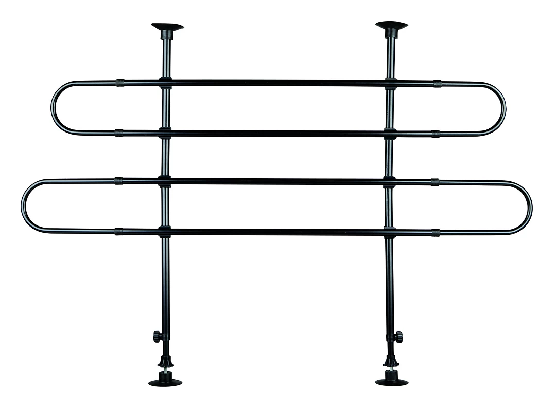 Het TRIXIE 2-delig autorek is gemaakt van gepoedercoat metaal en heeft schuine verticaalstangen die gebruik van de gehele kofferbak mogelijk maken.