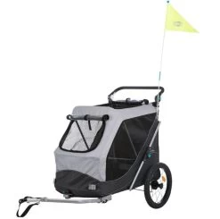 Ook aan de veiligheid is bij deze fietskar gedacht. De fietskar beschikt over reflectoren en een reflecterende veiligheidsvlag. De fietskar heeft een snel inklapsysteem. Hierdoor is de fietskar gemakkelijk inklapbaar en compact op te bergen. De fietskar wordt geleverd met een koppeling.